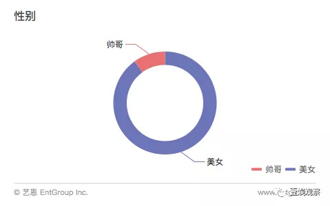根据艺恩数据统计,《偶像练习生》累计播出量为35.88亿次。而从爱奇艺、百度和腾讯TBI三大平台的播出数据看,《偶像练习生》的女性观众比例均大于男性观众比例。其中爱奇艺的男女比差距最大,女性观众比占高达90%,而男性观众比只有10%。腾讯TBI的男女比例相对接近,但女性观众比仍然有64%,男性观众占比为36%。由此可见,在这档或者说这类节目,更有女性市场。