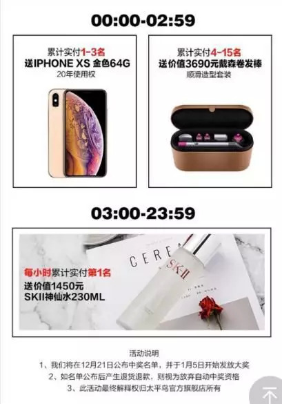 在今年双11太平鸟首页推荐的某款羽绒服,吊牌价1899,叠加购物津贴到手价849,并且这款羽绒服还标注是商场同款。除了折扣上的优惠,太平鸟女装也采用了具有吸引力的营销手段,比如送iPHONE XE与戴森卷发棒、SK2等。而太平鸟男装则更加疯狂,前一万名单笔订单实付满1000的顾客送店铺1000无门槛优惠券一张。再加上双11期间太平鸟女装需支付给天猫的坑位佣金,以及UV推广费用等,至少都需要消耗千万级别。而去年双11太平鸟女装销售额也不过2.08亿,如此逼近10%甚至更高的营销费用令人咂舌。
