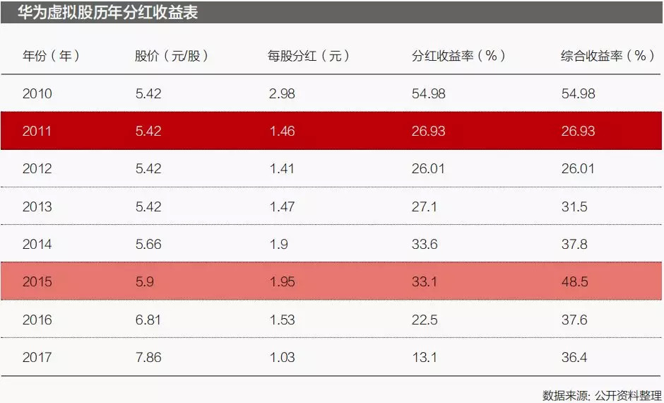 华为每股净资产始终保持在1元以上,但1元/股的认购价格持续至2001年。在融资难的创业早期,华为据此获取了充足的融资,得以渡过难关。