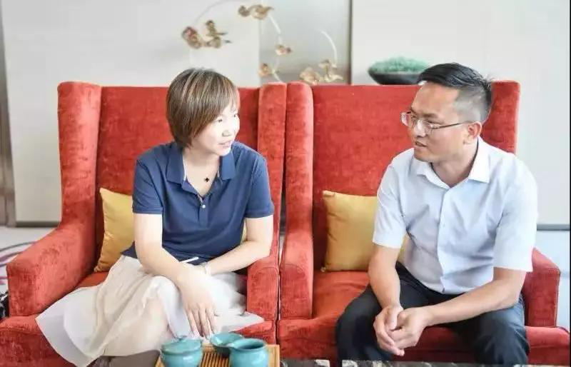 绿城杨柳郡集团总经理顾建明(右)接受易居研究院综合研究中心总经理崔霁采访