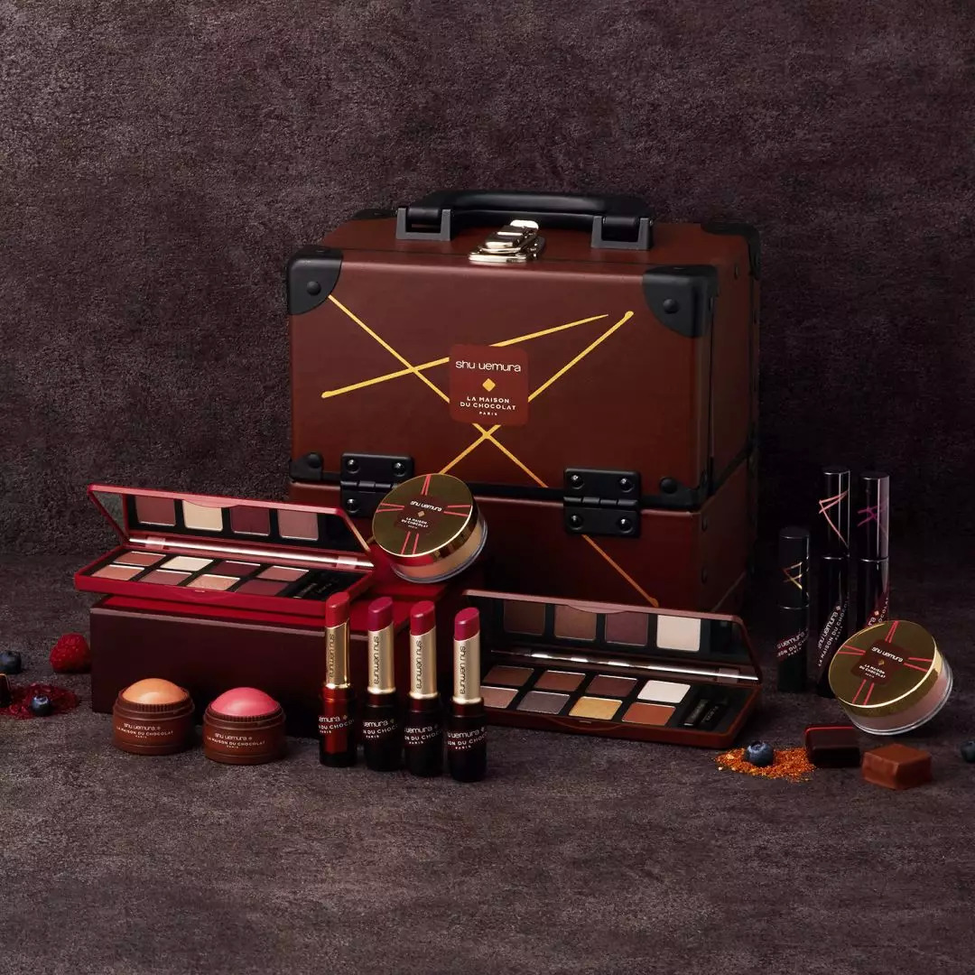 上面野模画的整个妆容的单品呢,都来自一个真的有巧克力香味的品牌哦,就是植村秀的圣诞限量~