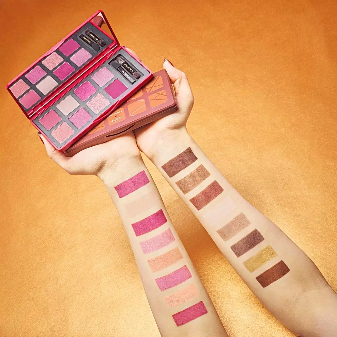 产品呢有两种色系的八色眼影盘、高光粉、腮红膏、刷子和无限色唇膏系列,每一个都是实用又好看,第一次有了想all圣诞全系列的冲动!听我慢慢介绍~