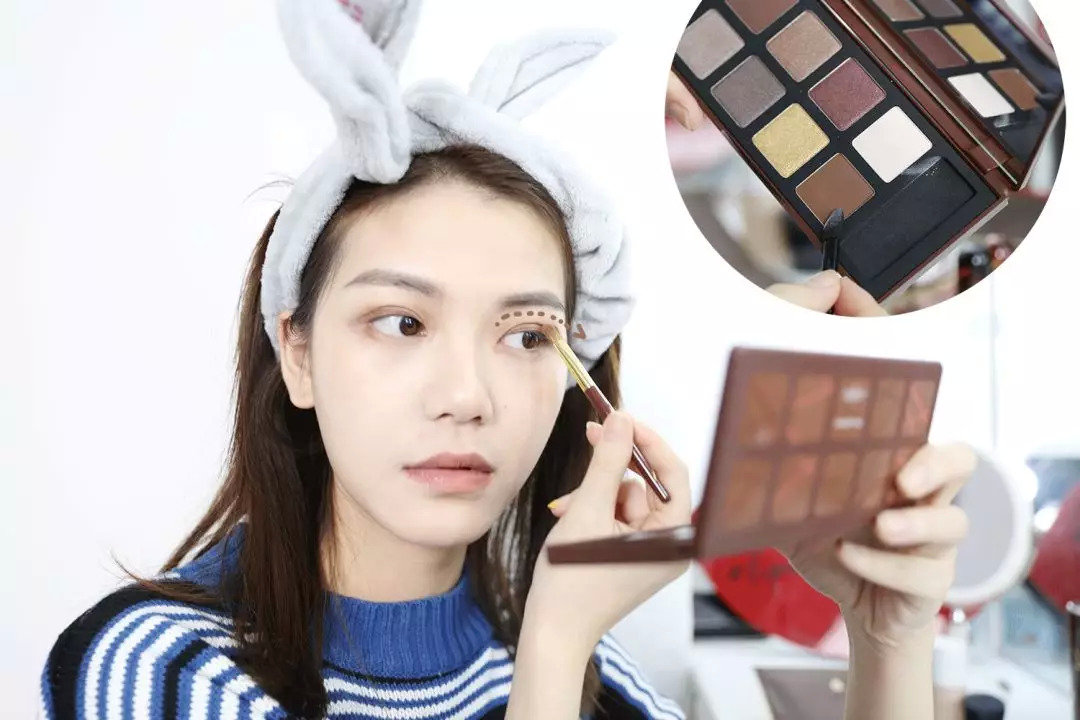 眼妆是重点,建议大家备一盘巧克力色的眼影盘,最好比普通大地色再浓郁一些的,哑光色和珠光色为主,实用度爆表~