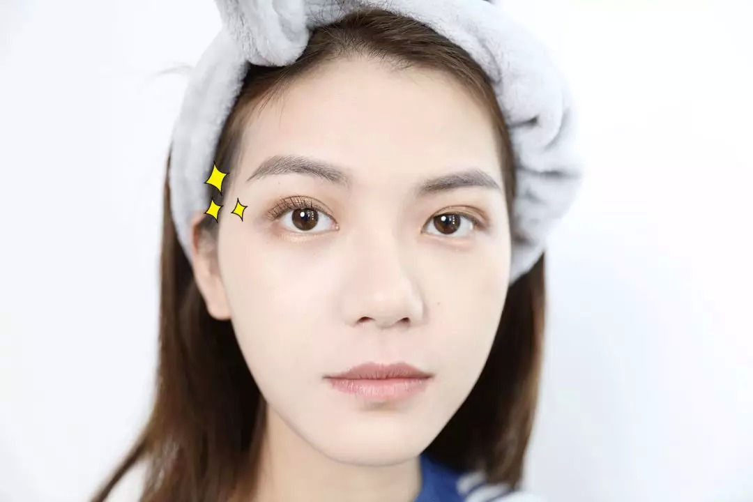 比较自然的画法呢,可以先用米白色在眼皮浅浅地打一层底。