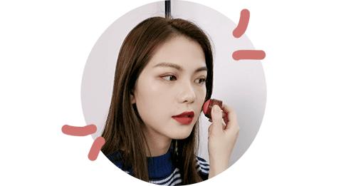 如果觉得修容不好下手,大家可以用偏豆沙或者红棕的腮红,在颧骨处往斜上方打,脸看起来更有气色的同时,还自带瘦脸效果,比修容可好操作多了。