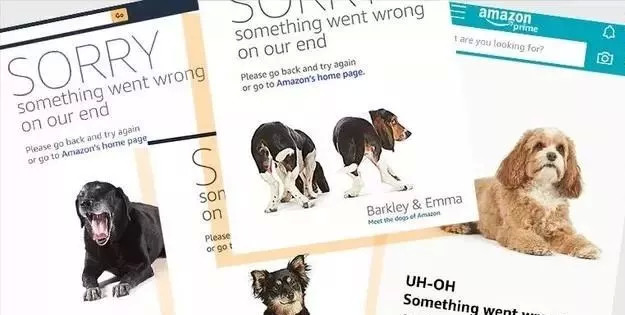 不仅如此,今年的Prime Day Amazon很多页面,很多服务直接down了。顾客们认识了各种各样的狗狗。(amazon错误页面显示狗)。