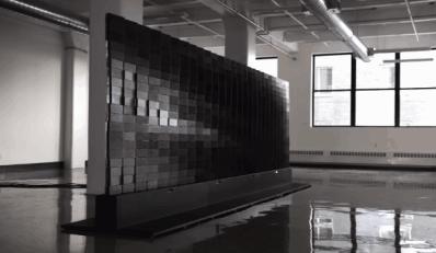 比如,像素风电子屏,靠着像素点大小的砖块翻转组成图像。