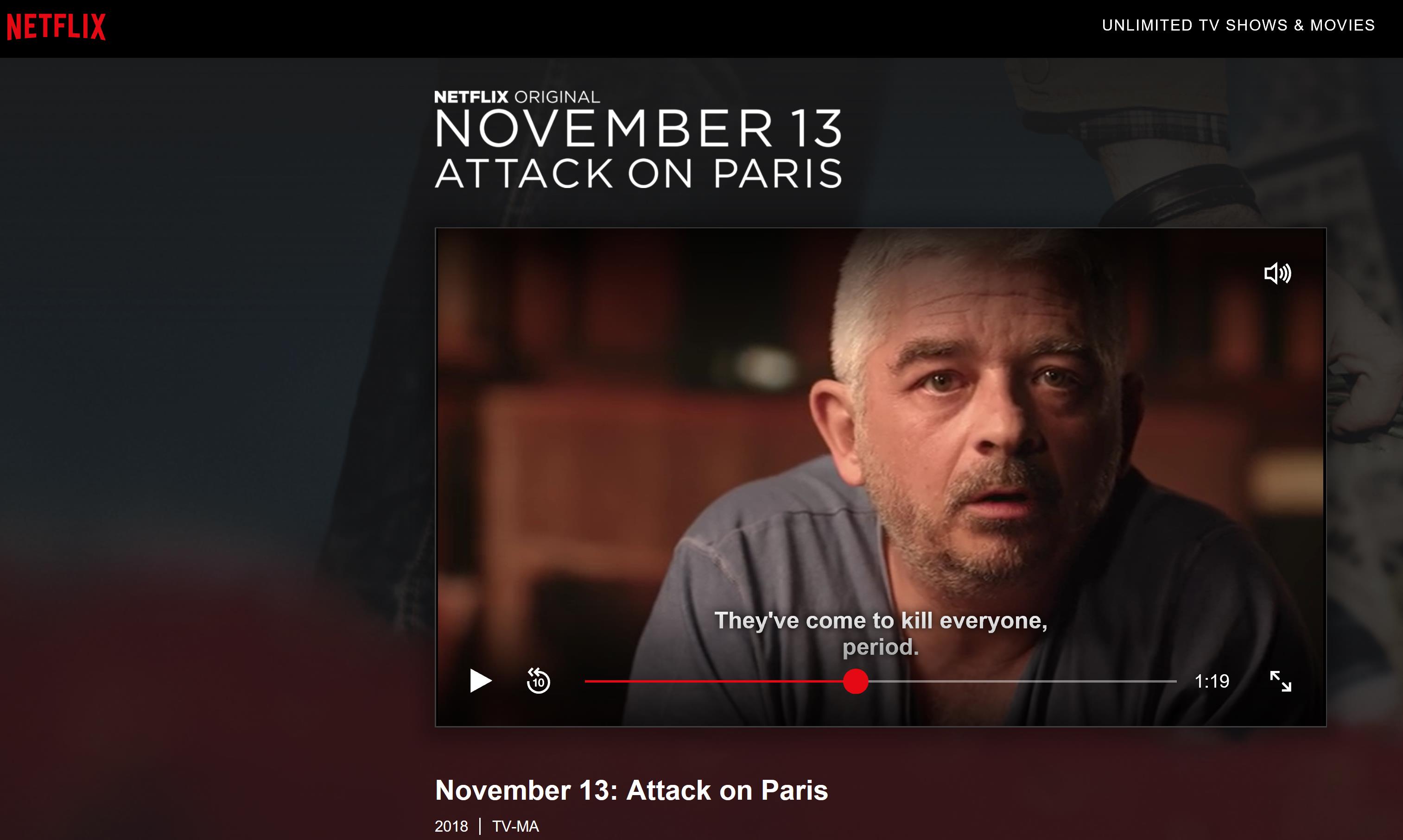 对于当年发生的一切,Netflix今年推出的三集纪录片《11月13日:袭击巴黎》作出了相对全面的呈现。遭遇袭击的咖啡馆La Bonne Bière的老板痛苦地表示,他的妻子就是在这里被枪杀的遇难者之一。巴塔克兰音乐厅的观众回忆起他们如何爬过假天花板躲避枪击。还有幸存者想起那种“混合了铁、血和火药”的气味。