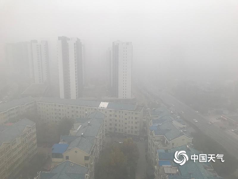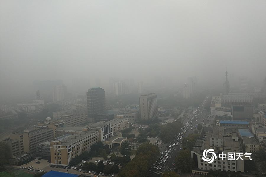 石家庄市区道路能见度非常差。