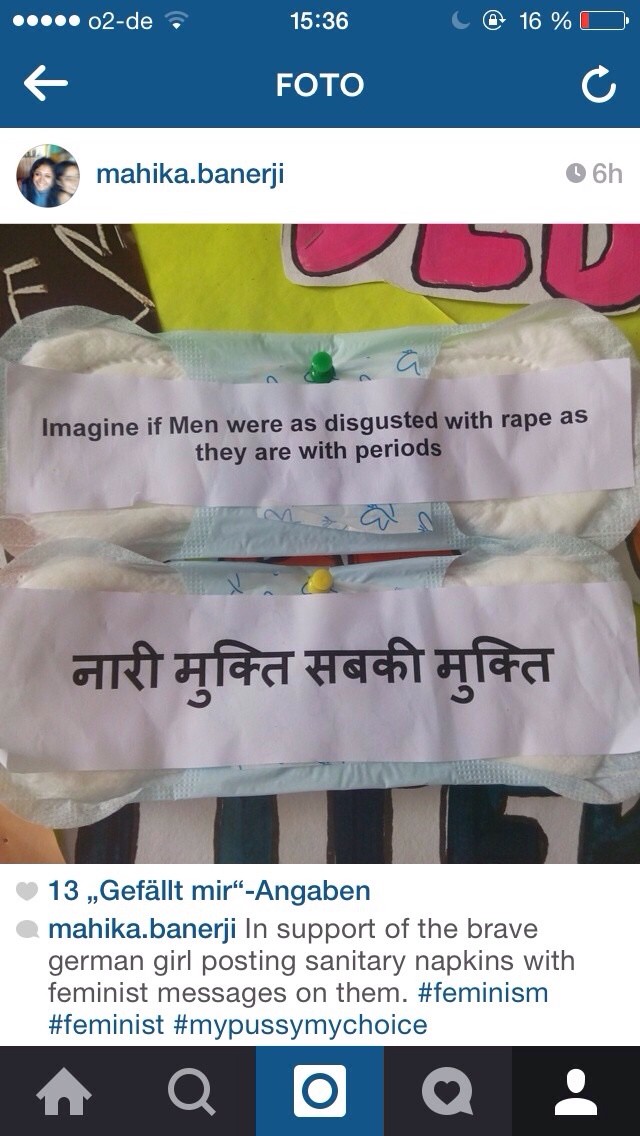 此项活动发起后在网络上受到各个国家年轻女性的关注,来自瑞士,巴西和美国的学生都准备响应该活动,在自己国家贴卫生巾。后来连印度男孩也加入了她们!