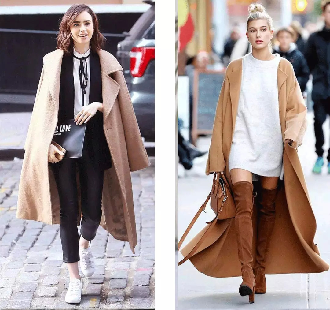 驼色大衣是秋冬最长命百岁的颜色,永远不用担心会过时~驼色这种颜色自带高级感,每个女生的衣橱里应该都有一件的吧。(没有的快去买)