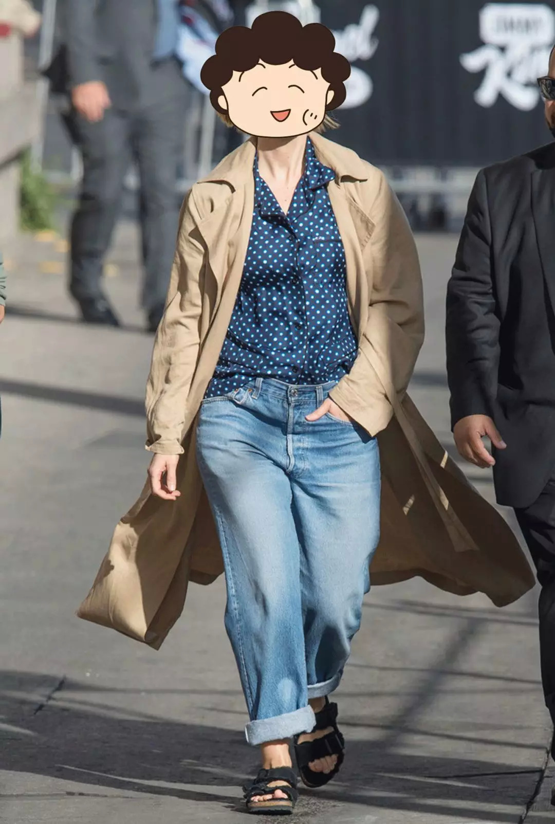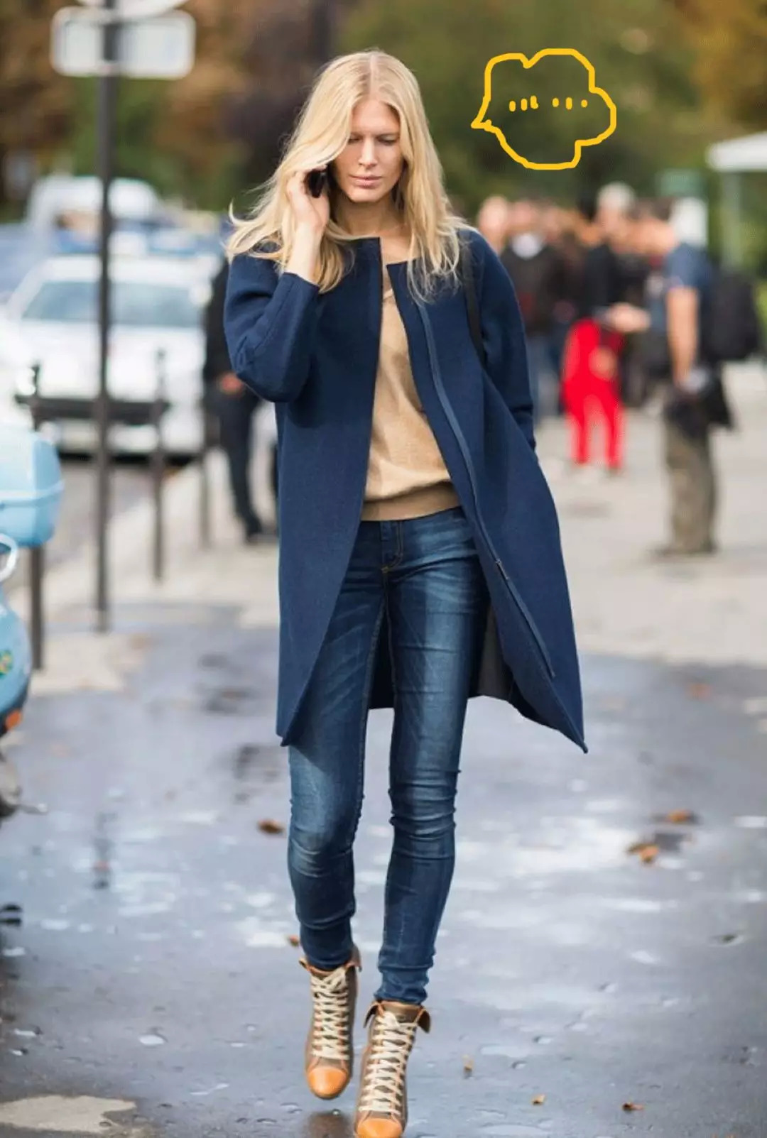 最好不要穿特别oversize的卷裤管牛仔裤配长款大衣,显得重心很低、邋遢还特别吃腿。