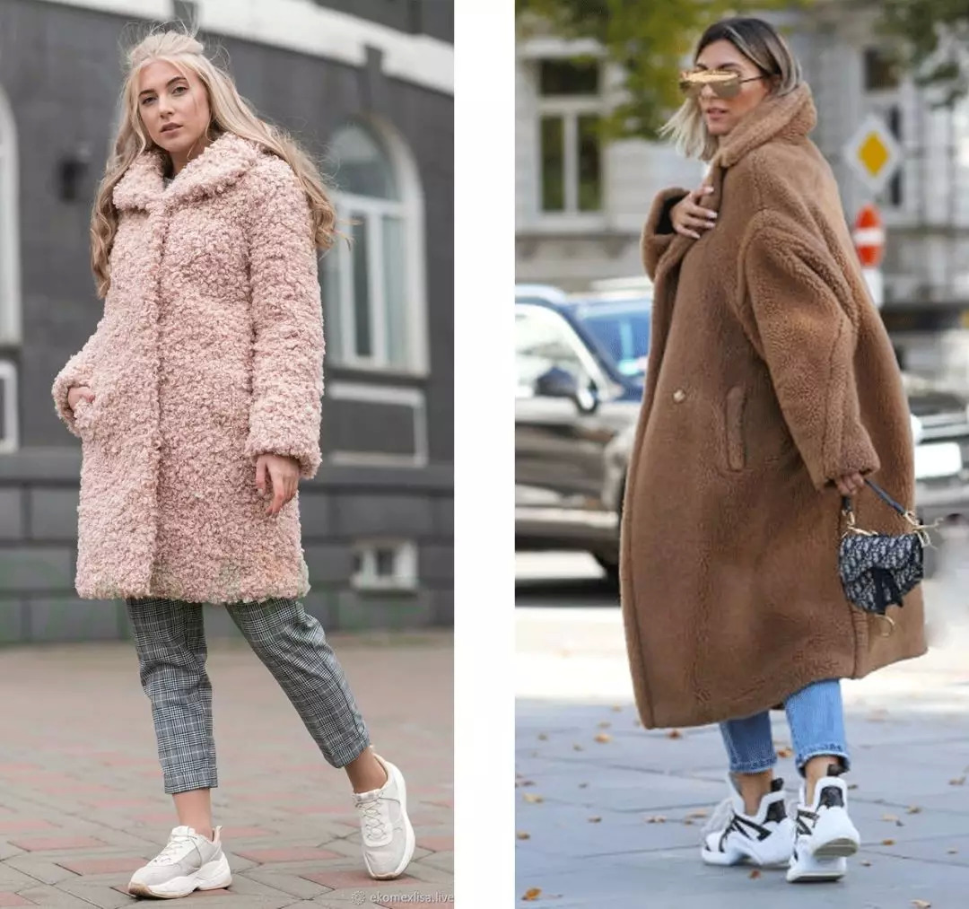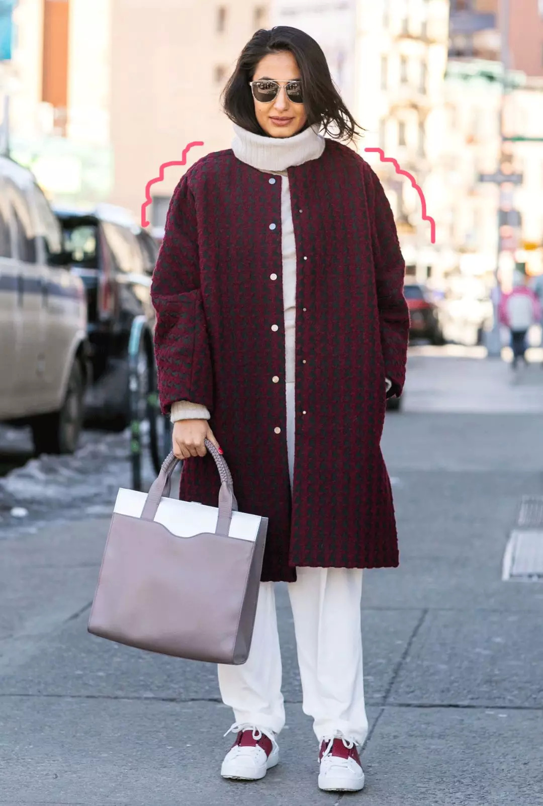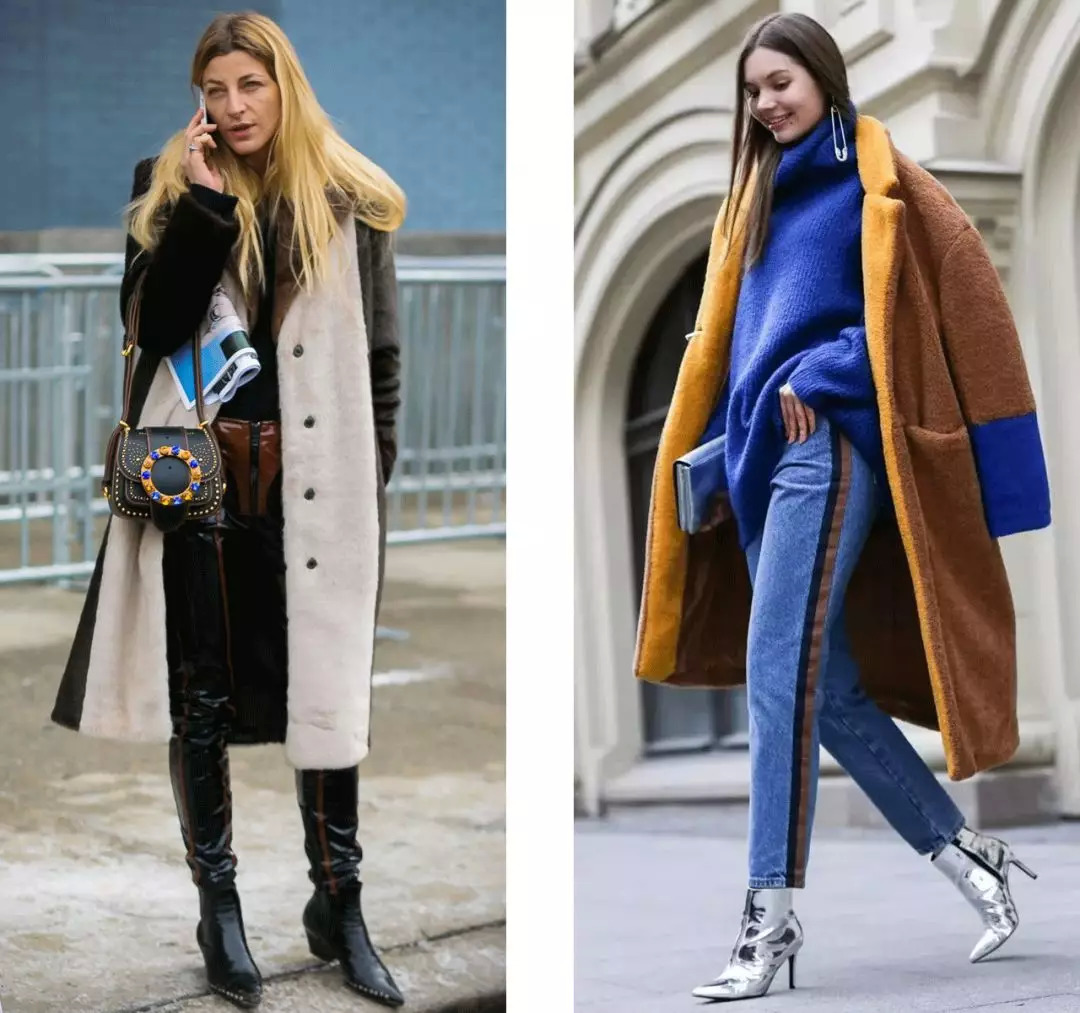除此之外还有拼接款的,更时髦。内搭可以呼应大衣的颜色元素。