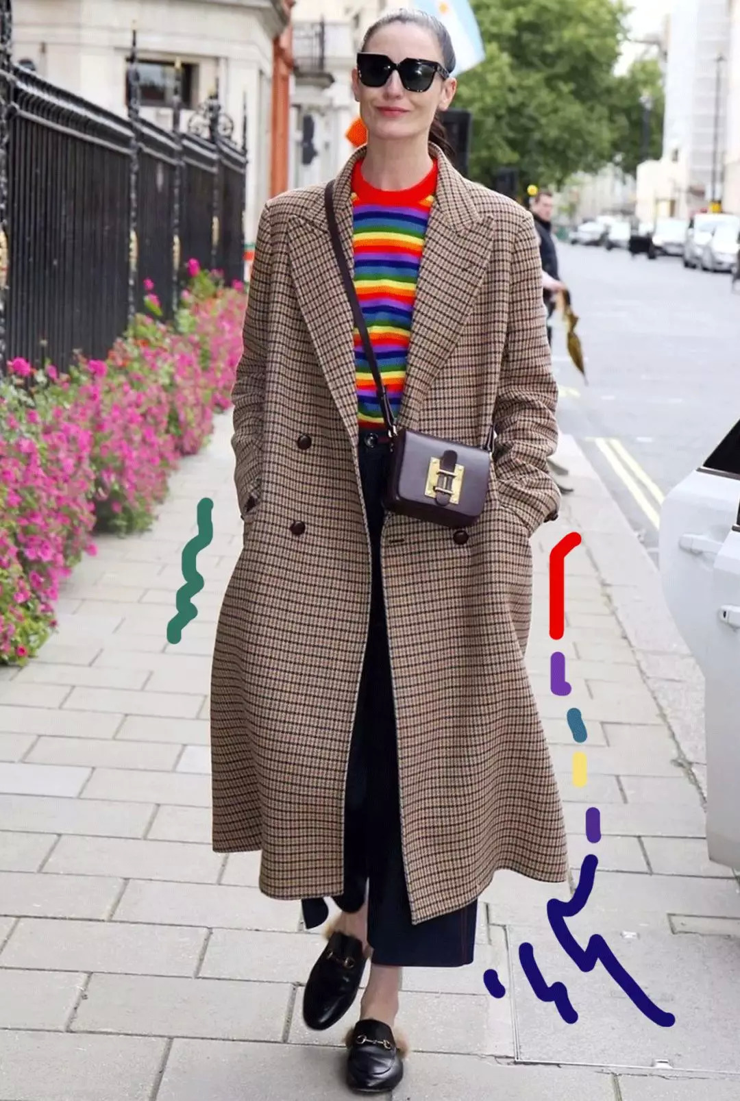 艺高人胆大的客官可以直接选择彩色格纹的~里面搭和条纹呼应的彩色或者撞色效果都不错哦。