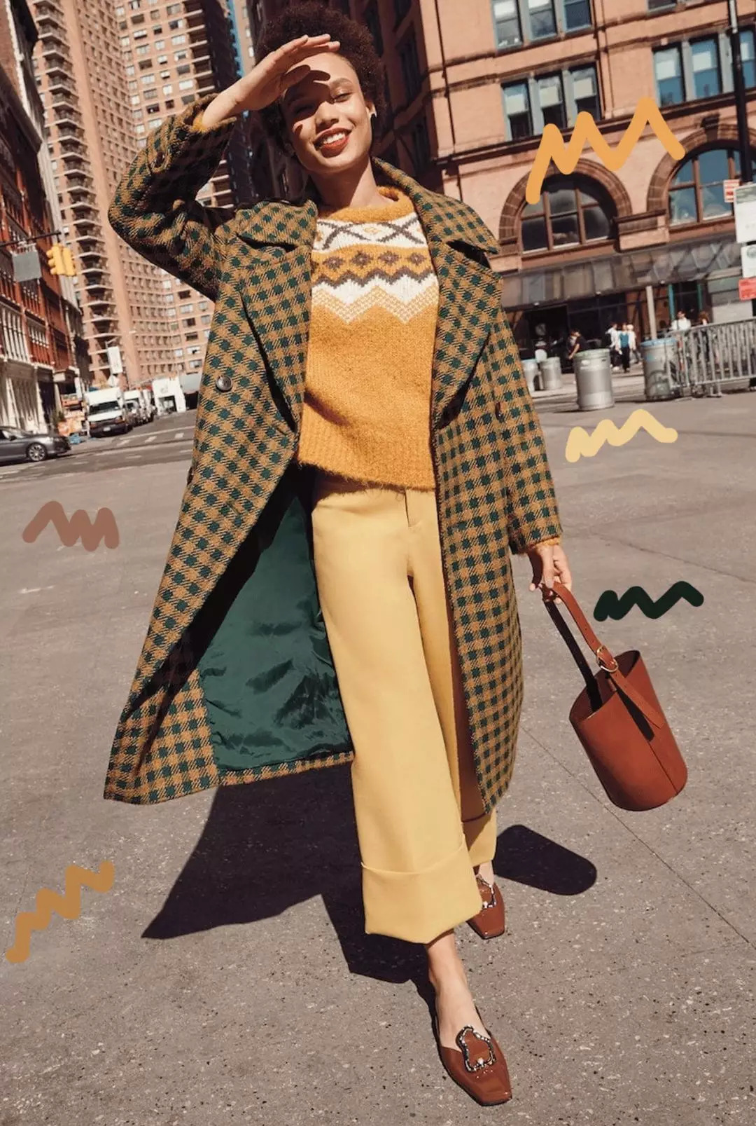 素色格纹如果买的整体颜色太暗、或者搭配得不好,就很容易穿得老气。