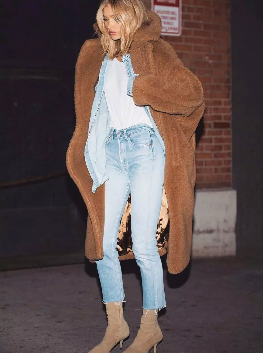 毛茸茸的质感容易显胖,如果你没有维密超模Elsa的身材就尽量别内搭过厚的衣服。