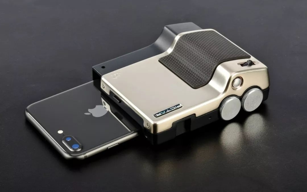 握柄机身上像单反相机一样有两个拨盘、两个按钮,分别用于控制曝光、快门、变焦、切换模式,专业相机上的操作几乎都能通过握柄实现,手机摄影玩家终于能实现自己的单反梦想。
