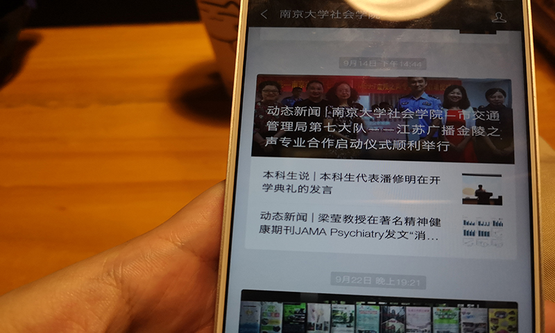 南京大学社会学院的官方微信很少推送学院老师发表论文的消息,如果有,多数是梁莹的。界面新闻获悉,梁莹主动将发表论文的信息提供给微信公号管理人员,后者碍于情面会择机推送。
