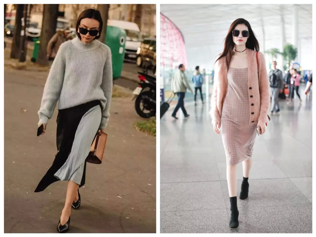 搭配上,最爱何仙姑和时尚博主Beatrice Gutu的穿法,彩色绒绒毛衣+同色系长裙,完全满足了我对“气质”这个词的所有幻想啊!
