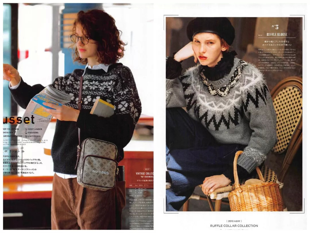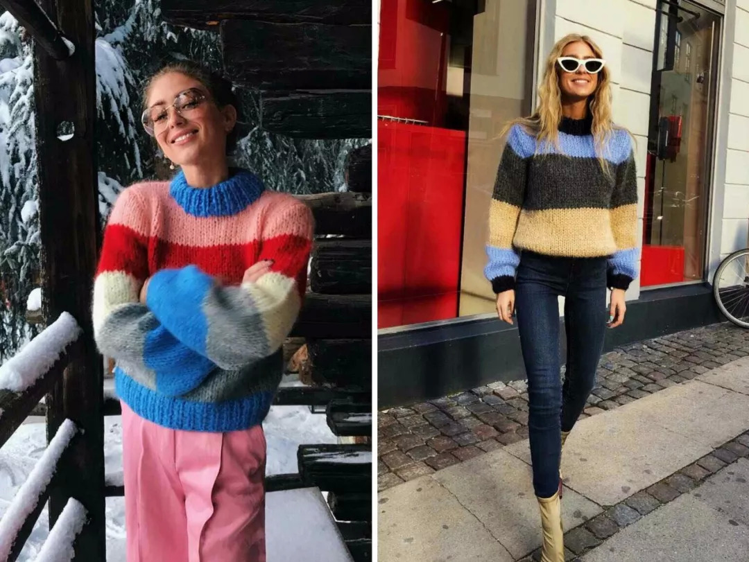 2.毛衣的花色越复杂越复古,但也越不好驾驭。