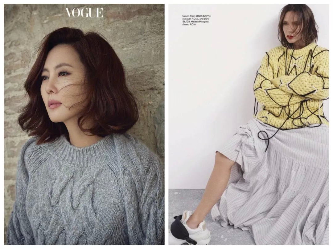 最近的韩版和澳版《VOGUE》11月刊里,两位“大女主”——金南珠和贝嫂,都在穿这种绞花毛衣
