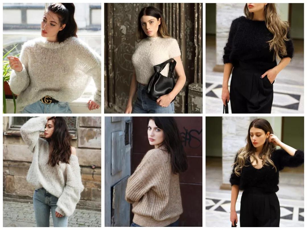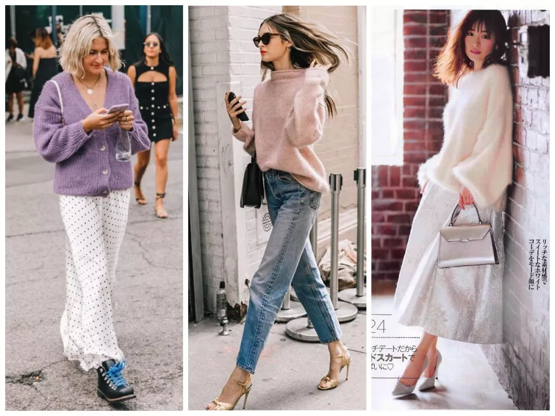 如果你是比较低调又温柔的姑娘,可以选择像马海毛这样手感软糯,或者色彩饱和度低一些的款式。