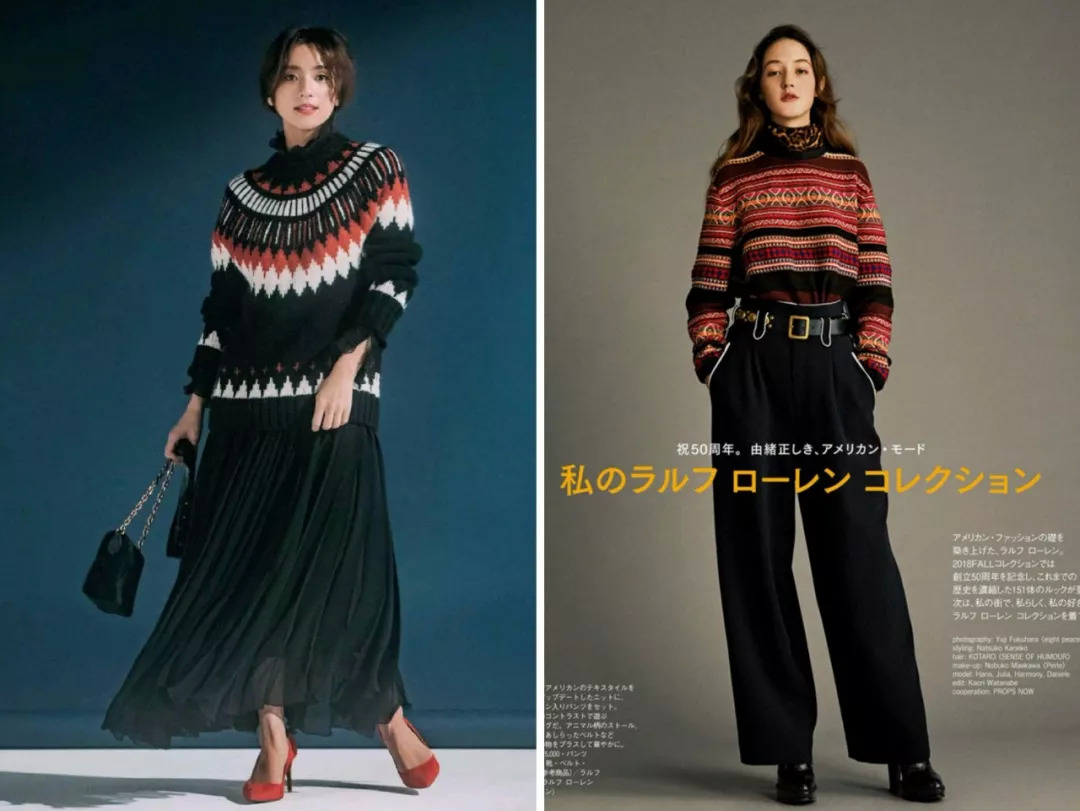 费尔岛毛衣,特点就是丰富又有规律的图案及配色,如果选品不当,容易看起来“土味”太重或太花。所以要注意几点: