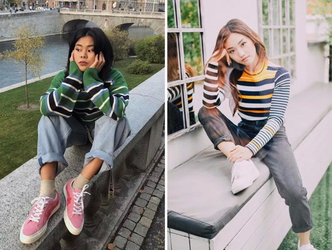 今年特别流行这种较宽的撞色条纹毛衣,Ganni就出了几款颜色拼接都很好看,丹麦造型师Emili Sindlev都有穿~