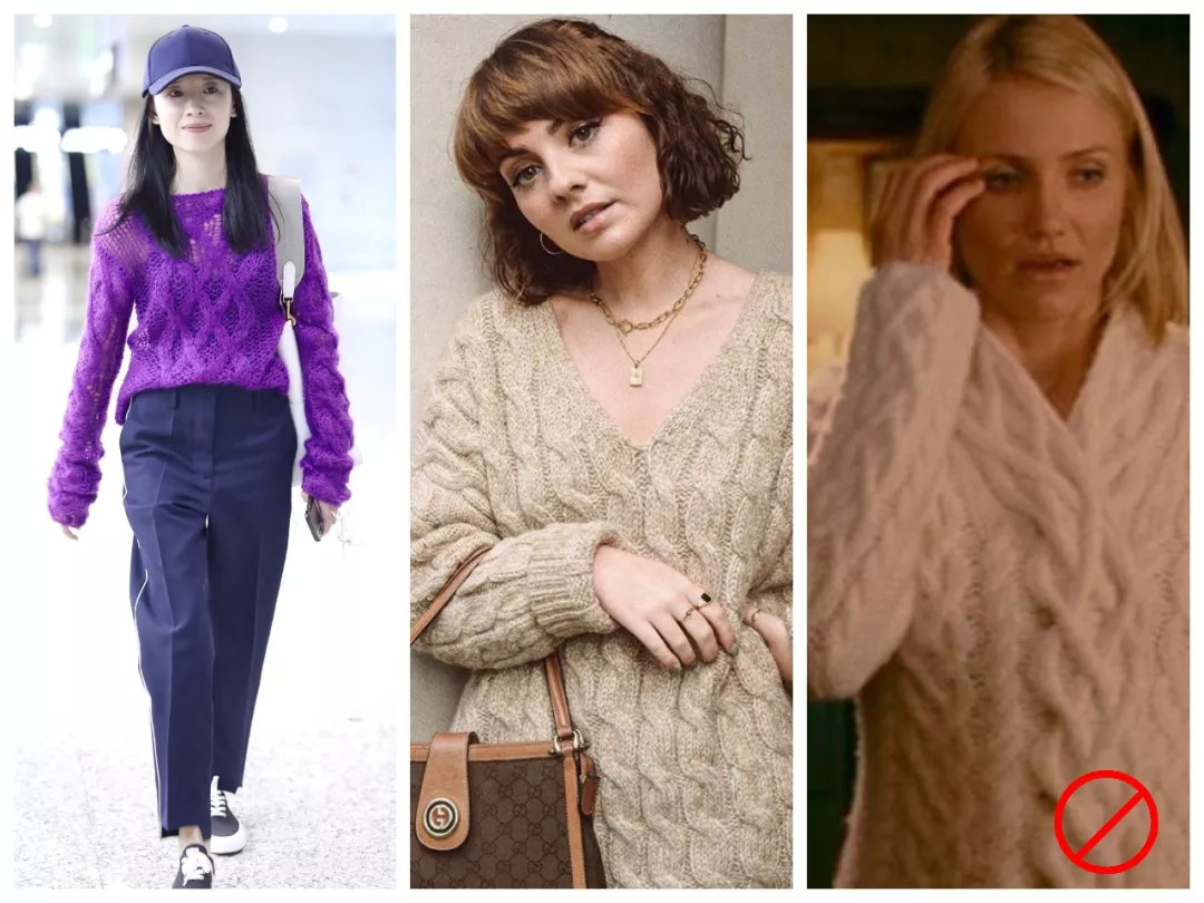 同时,因为绞花种类很多,按照织法不同效果也不一样。简单来说,花纹越浅、越稀疏,就越显瘦。