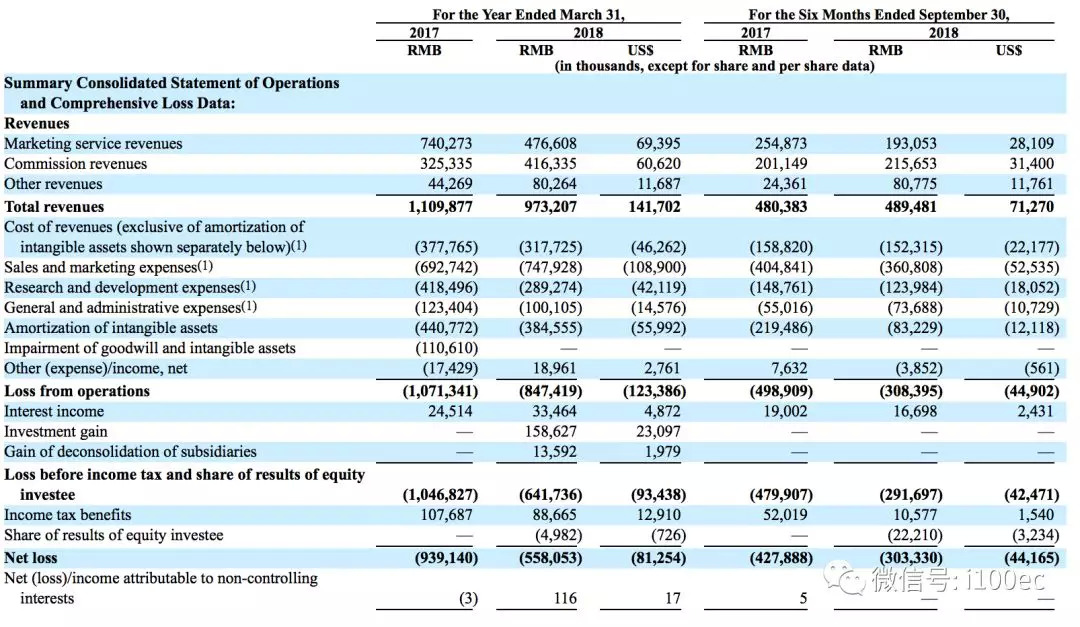 蘑菇街目前公司财务仍处于亏损状态。招股书数据显示,截至2017年3月31日和截至2018年3月31日的一年时间里,蘑菇街的调整后净亏损分别为人民币4.761亿元和人民币4.202亿元在截至2017年9月30日和截至2018年9月30日的6个月时间里,蘑菇街的调整后净亏损分别为人民币2.523亿元和人民币1.857亿元。