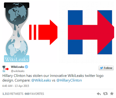 首先站出来的是维基解密,他们认为希拉里绝对是盗用了他们的Twitter头像。