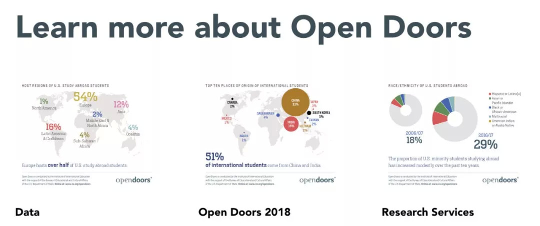 先简单介绍下《门户开放报告》的背景:《门户开放报告》(Open Doors)是由美国教育和文化事务局支持、国际教育协会主办的一个综合信息平台。