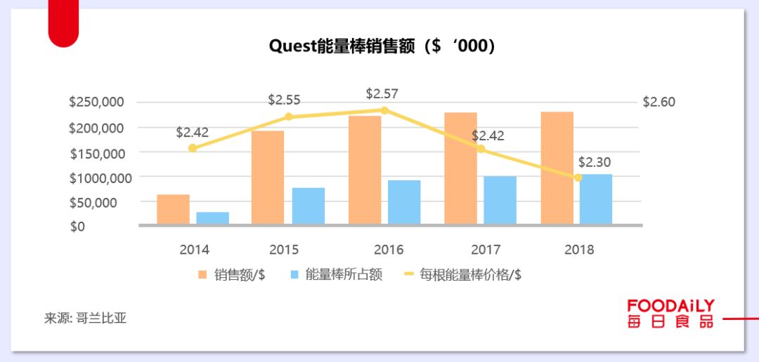 Quest Bar是Quest Nutrition公司旗下的蛋白棒品牌,在美国十大最畅销高蛋白棒品牌中排名第二,这家公司于2010年成立,8年间QuestNutrition从蛋白棒起家,利用蛋白棒的先发优势不断为自身谋得发展。