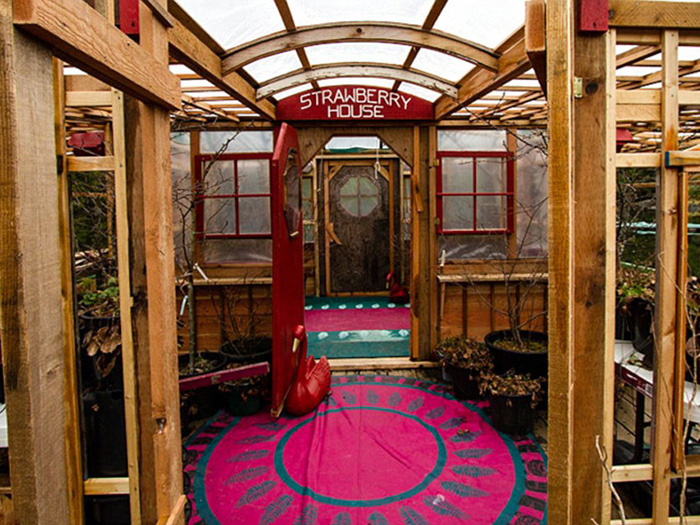 整栋建筑可分为12个部分,其中有好几间温室,因此可以全年种植水果和蔬菜。太阳能板和光伏能源发电机是电力的主要来源。除此之外,King和Adams还建造过鸡舍,不过没多久,他们就意识到周围的捕食者可以轻而易举地进入鸡舍,于是放弃了圈养牲畜。