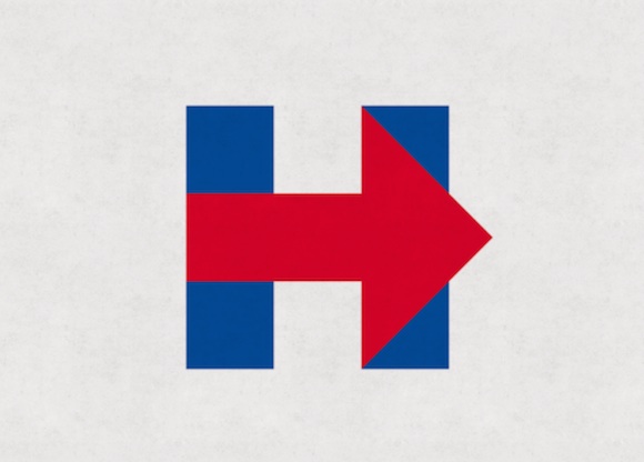4月12日,和希拉里正式参选2016年美国总统这个消息一起公布的还有这位二度参选的候选人所采用的最新竞选标志。这次希拉里的竞选标志走极简设计风格,代表希拉里(Hillary)的蓝色H字母被红色的右向箭头覆盖,就是整个标志的全部。