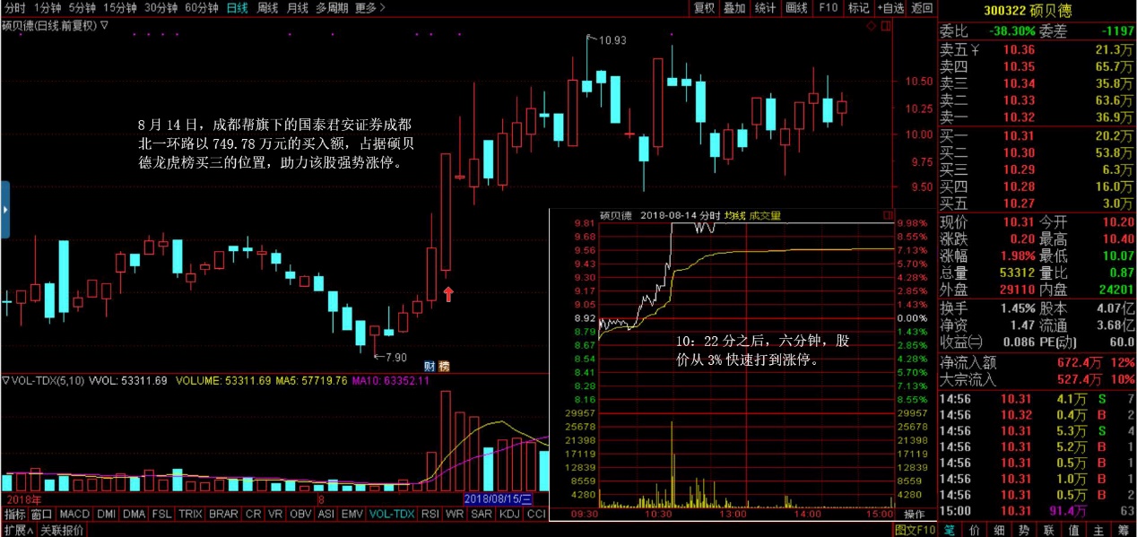 短线王则取其两个核心营业部之名,将其称之为“成都南北环”,(下文中统称为“成都帮”)除了上述特征之外,还指出“南北环常常联动,擅长跟风板,尤其喜欢尾盘拉板。”