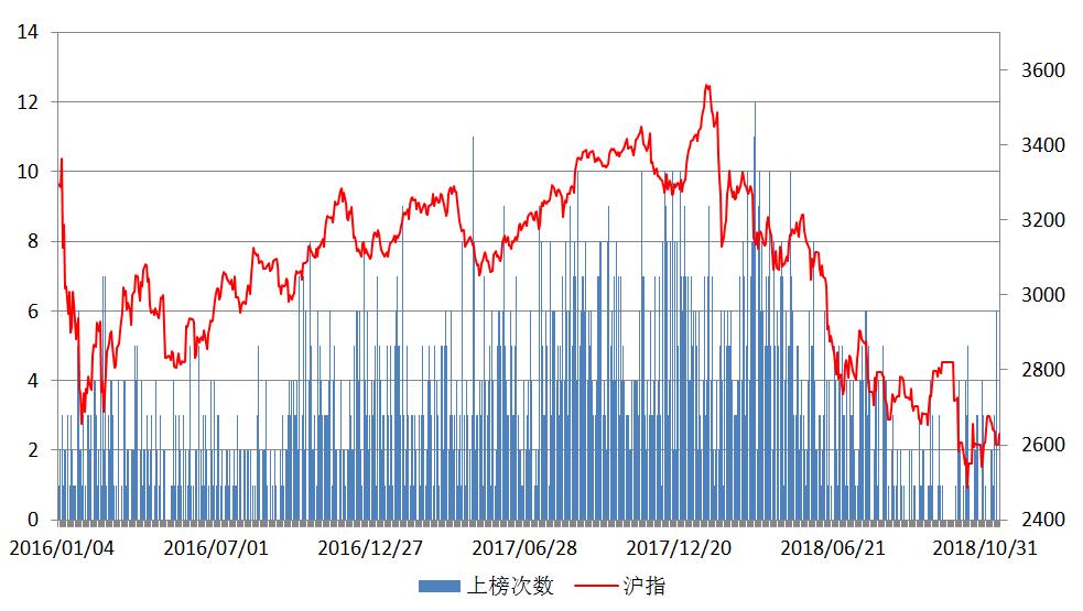 界面新闻对比了2016年以来成都帮登上龙虎榜的频次与同期沪指的表现情况,统计区间内成都帮总体而言交易十分活跃,平均每日上榜股票数量在3次以上,峰值时单日上榜的股票数量高达12只,即使是在今年1月底大盘深度回调之际,成都帮也依然是频频登上龙虎榜。