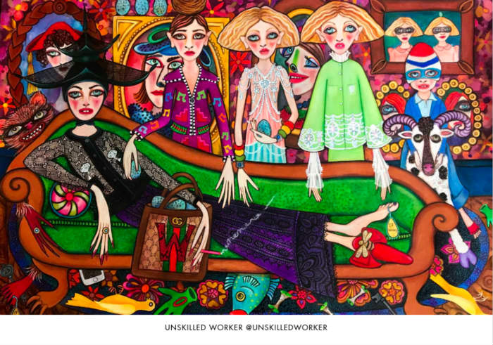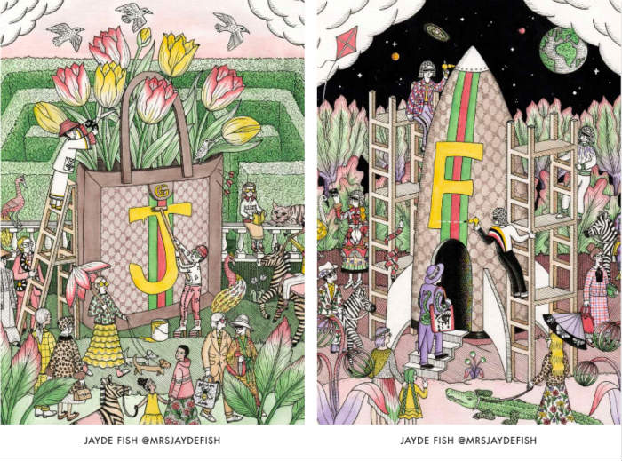 为了支持“Gucci DIY”计划,Gucci请了一些艺术家创作了一系列 DIY 作品,并在品牌的社交媒体账户和网站上分享,给你看看: