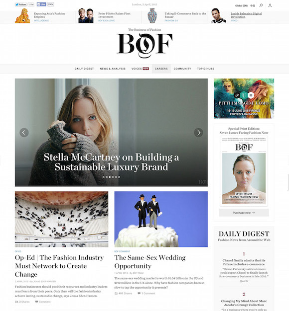2007年,曾经在麦肯锡工作过的Imran Amed最初只是在个人博客上,按照自己的兴趣从商业角度分析时尚,但这个博客很快引起了诸如Oscar de la Renta的CEO等读者,BoF开始变得知名,并发展成为现在这个拥有25人的团队。