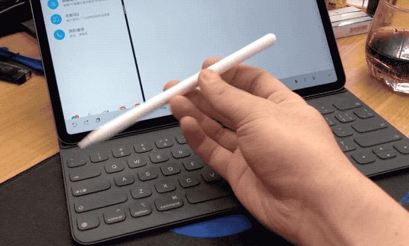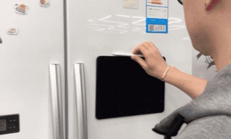 锁屏状态下直接拿起吸附在顶部的笔,轻触屏幕就可以直接进入备忘录书写。这让新 iPad Pro 也可以胜任冰箱贴这样的职位。