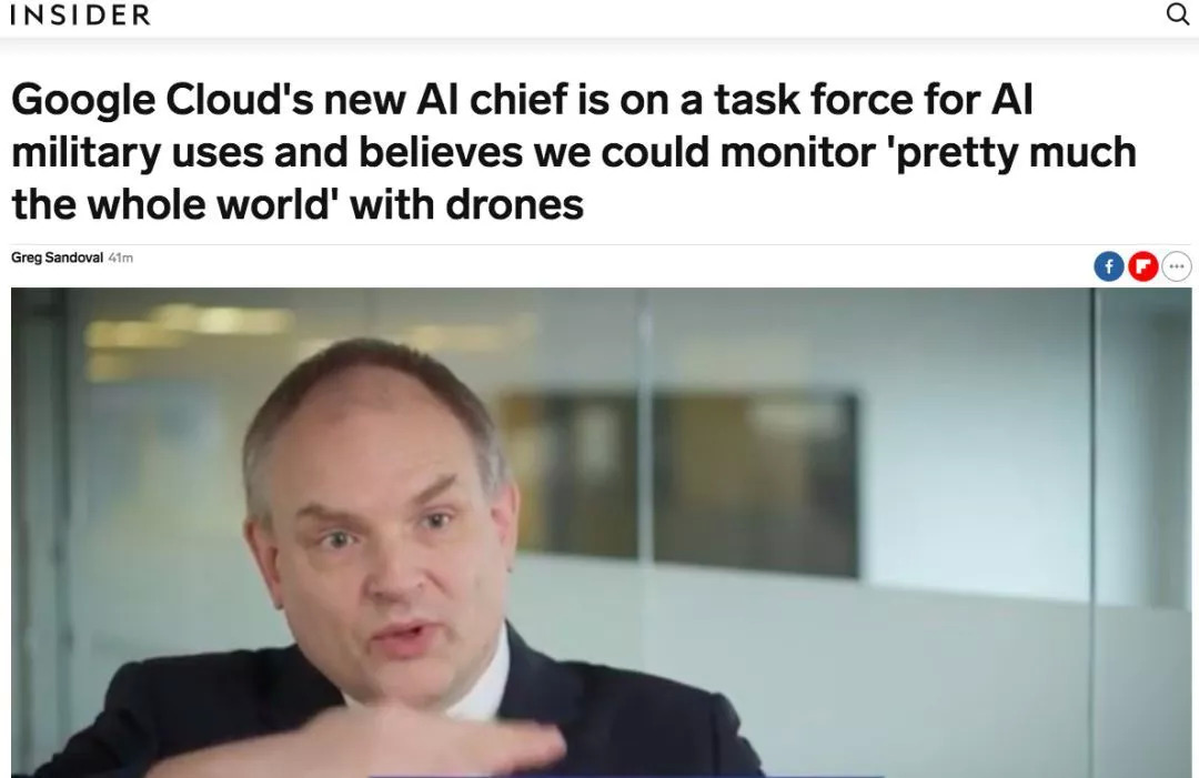 跟李飞飞相比,Andrew Moore显然大胆的多。最近在接受媒体采访时,Andrew Moore说,“正如我们多年来一样,我们将继续在许多领域与政府和军队合作。其中包括网络安全、培训、军事招募、退伍军人医疗保健以及搜救。我们还将努力提供提高政府效率的工具。