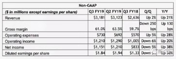 由于图灵架构GPU的发布,第三季度,英伟达的GPU销售低于预期,用户们购买上一代显卡的意愿大幅降低,而新一代又贵又不好买,而且还问题多多。