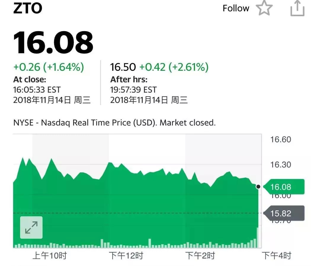 周三收盘,中通快递股价上涨1.64%至16.08美元,总市值约126.58亿美元。