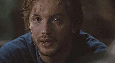 电影中汤姆·哈迪听到了对方一席话,先是露出无奈的笑意,继而留下两行热泪。