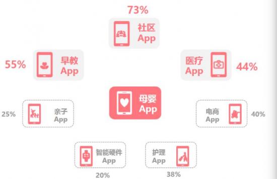 有调查发现,妈妈偏爱电商和社区类的APP,而爸爸偏爱功能实现和硬件类,比如护理、医疗、智能等专业问题解决APP,而市面上针对妈妈的产品明显要更多。