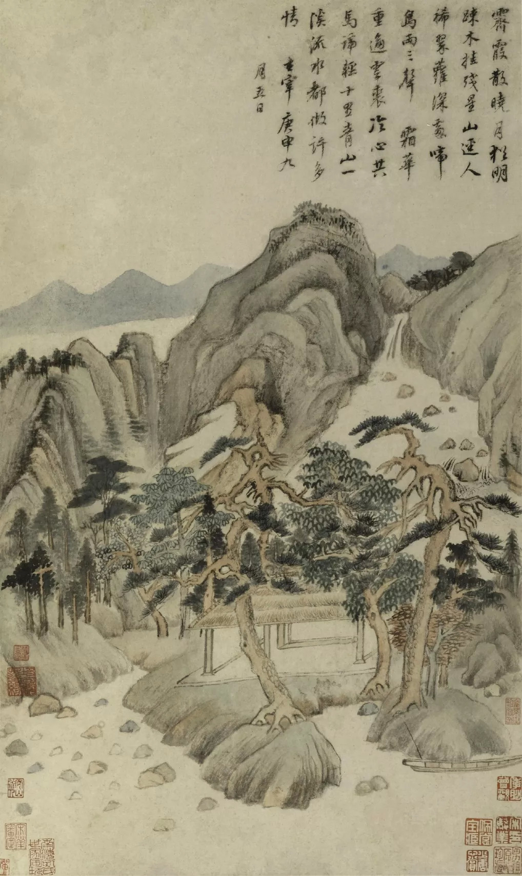 始以米芾为宗,后自成一家,名闻外国。其画集宋、元诸家之长,行以己意,潇洒生动,非人力所及也。