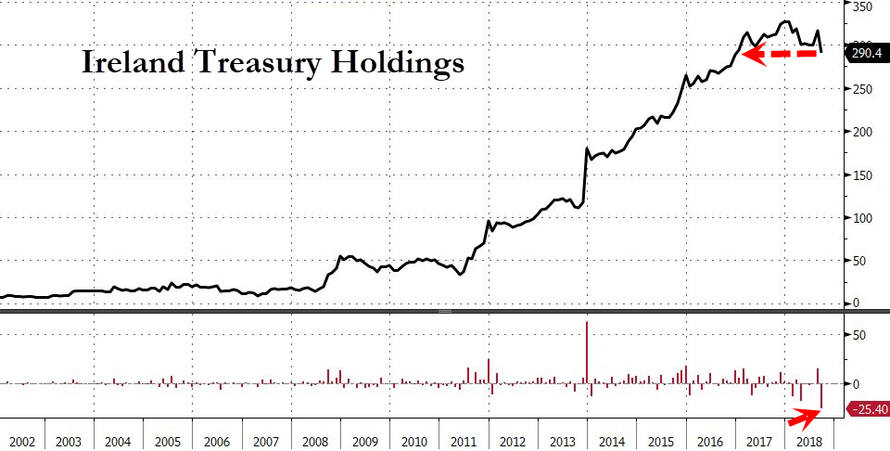 虽然巴西的9月持仓环比下降,跌落8月所创历史最高点,但总规模仍位居第三位,仅次于中国和日本。9月爱尔兰持仓虽然和8月一样排在第四位,但当月环比减持254亿美元,减持规模在主要持美债地区中最大,抹平了前两个月合计增持规模:156亿美元。