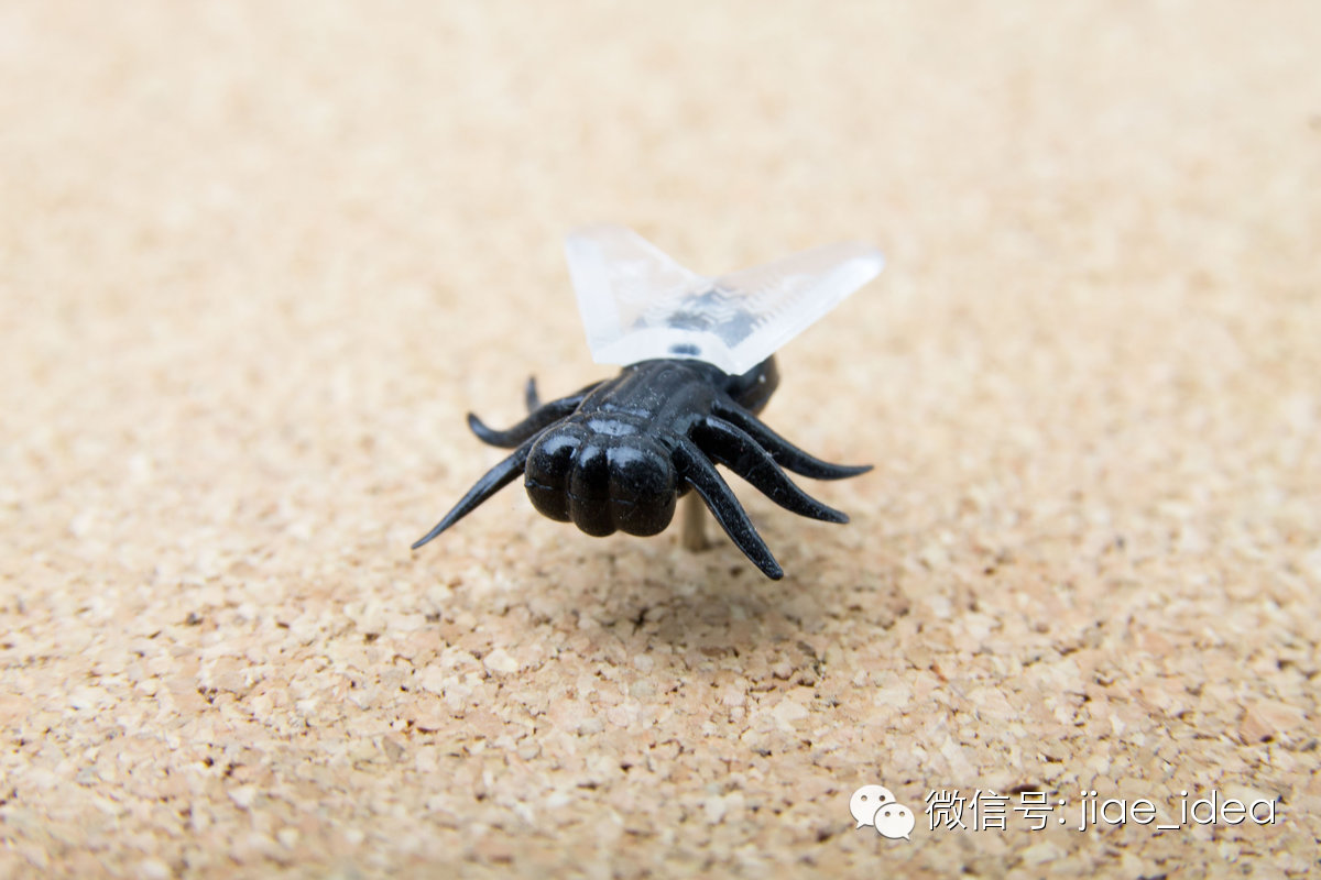 仿真的苍蝇图钉,拥有不输的精致细节。腹部的图钉,可以轻易塞进软木塞或墙中。
