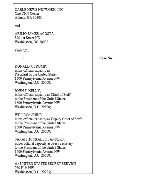 11月13日,CNN向联邦法院提起诉讼,以总统特朗普、新闻秘书桑德斯等为被告,要求白宫恢复阿科斯塔的通行证。CNN的起诉标志着特朗普上台以来美国媒体采取的最为严肃的法律行动。