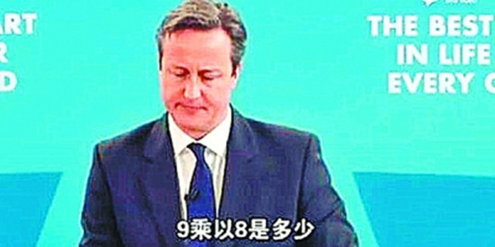 英国民众老早就抱怨本国数学教育太弱,许多孩子小学毕业时都背不出九九乘法表。今年2月,有人要求英国首相卡梅伦、教育部长等官员当众回答“9乘以8等于几”,卡梅伦等人都避而不答。